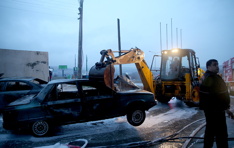 İtfaiye ekipleri patlamanın ardından çıkan yangına müdahale etti. Yaklaşık iki saatte kontrol altına alınan patlama sonrası bölgedeki itfaiye ve AFAD ekiplerinin soğutma çalışmaları devam ediyor. Patlama esnasında istasyonda 3 otomobil, bir yakıt tankeri, 1 traktör zarar gördü. Zarar gören araçlar, çekici yardımıyla istasyondan çıkarıldı.