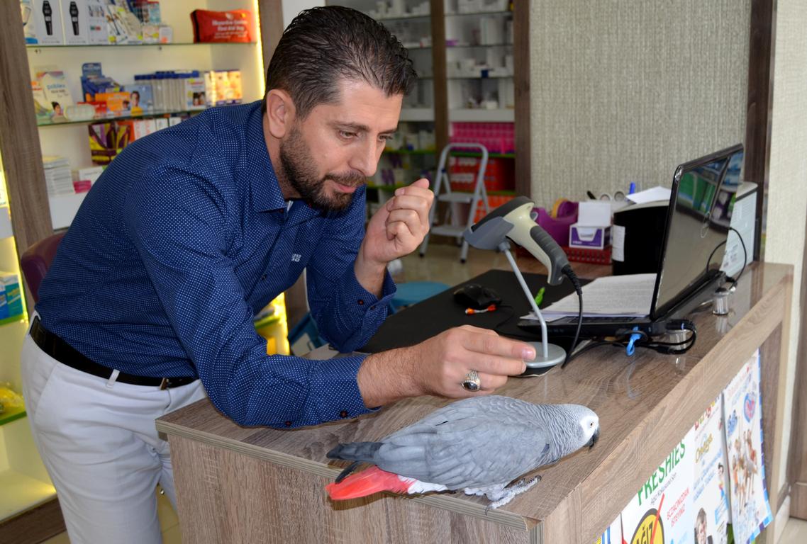 Batman’da yaşayan eczacı Veysi Mercimekçi, 4 yıldır günün tamamını “Yakup” adını verdiği 7 yaşındaki papağan ile geçiriyor.