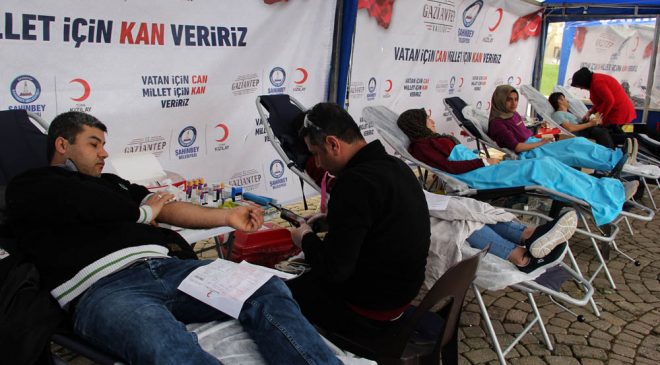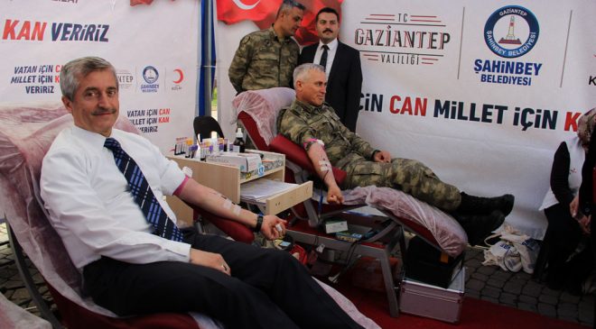 Gaziantep Valiliği, Şahinbey Belediyesi ve Türk Kızılay tarafından Demokrasi Meydanı’nda düzenlenen “Vatan için Can Millet için Kan veririz” sloganıyla başlayan kan bağışı kampanyasına Gaziantep Valisi Davut Gül, Kızılay Genel Başkanı Dr. Kerem Kınık, Şahinbey Belediye Başkanı Mehmet Tahmazoğlu, Gaziantep 5. Zırhlı tugay komutanı Tuğgeneral Şefik Atak ve çok sayıda vatandaş katıldı.