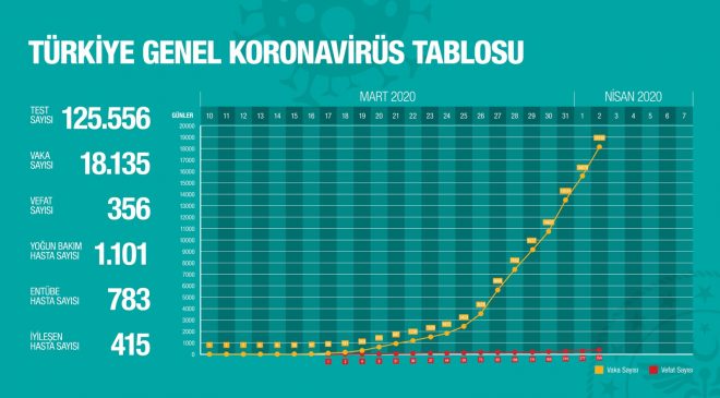Bugün itibariyle toplam test sayısının 125 bin 558, toplam vaka sayısının 18 bin 135 olduğunu açıklayan Koca, koronavirüsten ölenlerin sayısının da 79 artarak 356’ya yükseldiğini belirtti.