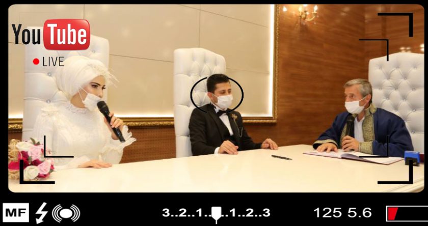 GÜNEY24.COM – Korona virüsünün hızla arttığı kentlerden biri olan Gaziantep’te yetkililer yeni bir önlem alma yoluna giderek, sosyal mesafe kuralını gözetmek amacıyla nikah törenlerini canlı yayınlamaya başladı.