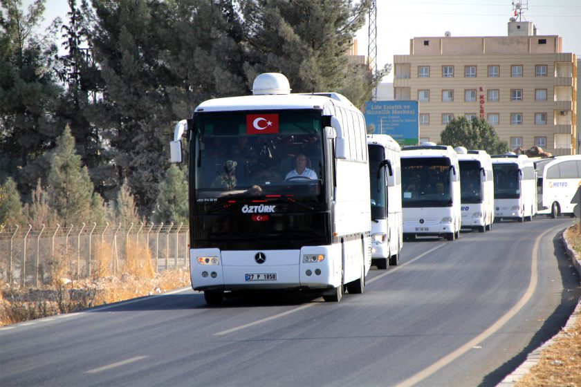 Azez’den öğlen saatlerinde yola çıkan yaklaşık 25 otobüslük askeri konvoy Kilis, Gaziantep, Şanlıurfa güzergâhından gelerek 16.00 sıralarında Akçakale’ye ulaştı. İlçeye gelen konvoy geçtiğimiz yıl boşaltılan Akçakale Geçici Barınma Merkezine giriş yaptı. Konvoyun ilçe merkezine girişi esnasında trafik ekipleri geçiş güzergahındaki yollarda trafiği kesti.