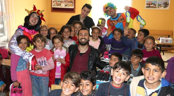 27 Mart Dünya Tiyatrolar Günü dolaysıyla Çınar ilçesine bağlı Yazıçiceği köyüne gittiklerini aktaran Kaplan, köyde okuyan çocuklara etkinlikler yaparak ve ayakkabılar dağıtarak hem ayaklarını hem de kalplerini ısıttıklarını bildirdi.