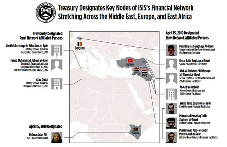 Al-Ard Jadidah adlı döviz bürosuyla ilgili olarak ABD Hazine Bakanlığı Dış Varlıklar Kontrol Dairesi Başkanlığı (OFAC) Nisan 2019’da aldığı karar ile IŞİD’in Orta Doğu, Avrupa ve Doğu Afrika’daki para trafiğine dikkat çekmiş ve Rawi ailesinin 6 üyesinin örgütün finansal ağındaki bağlantılarını duyurmuştu. Kararda, Rawi ailesinin Türkiye’deki bağlantılarına da işaret edilmişti.